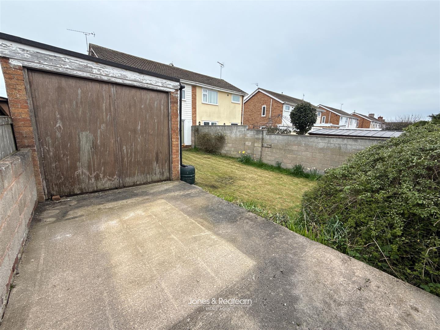 To the exterior, the property benefits from gardens to both the front and rear. The front garden is primarily laid to lawn and features a concrete driveway providing ample off-road parking for multiple vehicles. A gate to the side of the property offers additional parking and leads through to the detached garage.